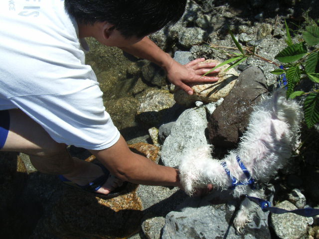 外の物音で吠えてしまうので、「し~だよ」って教えています。