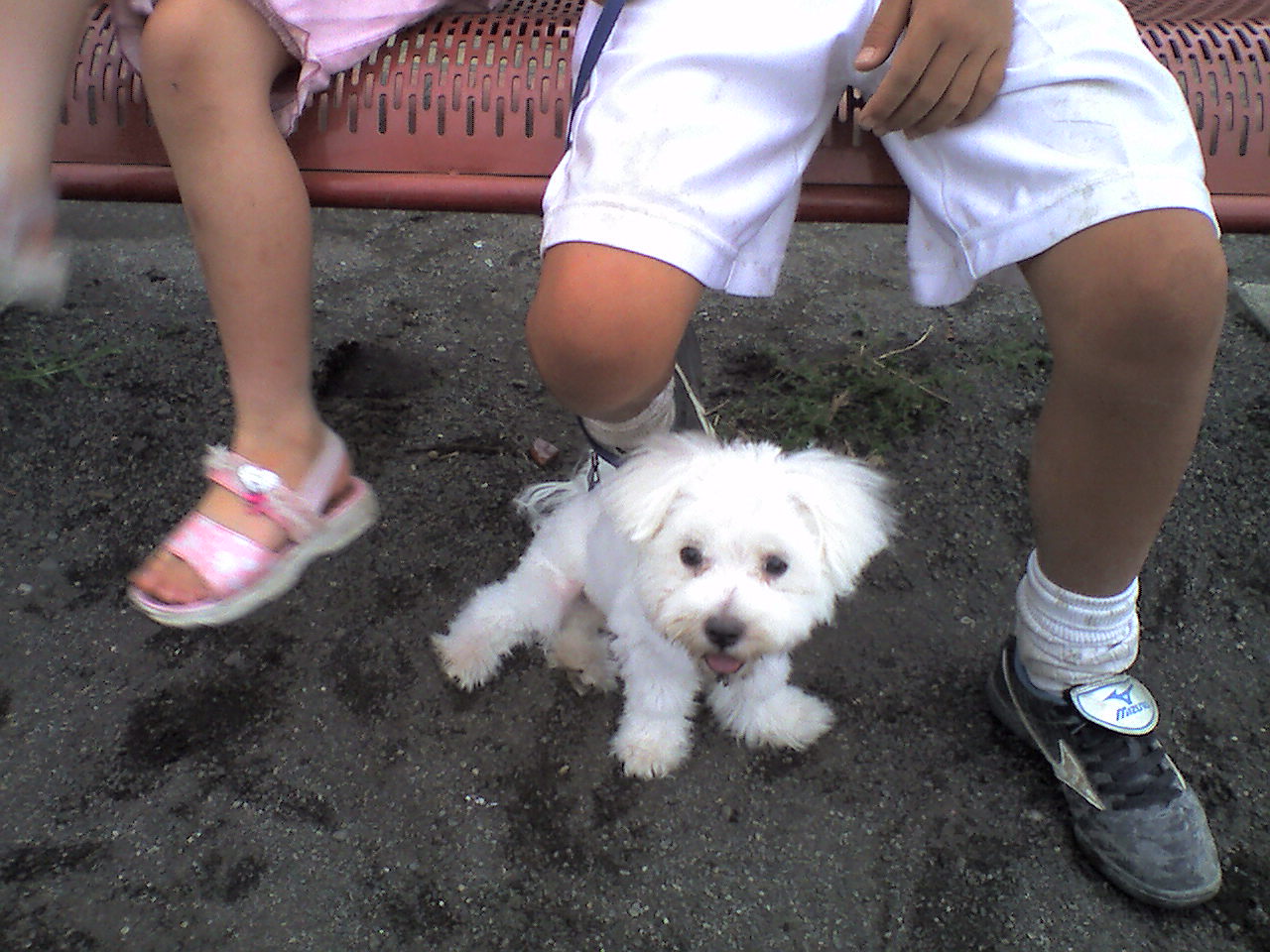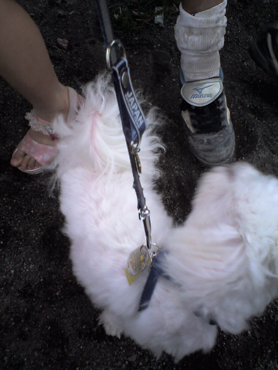お散歩では、ストレス解消に 一生懸命ほえていました。