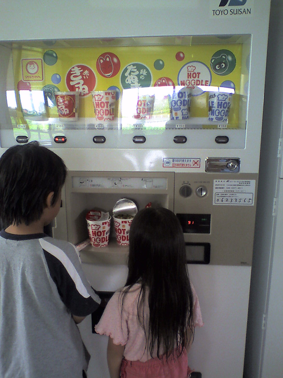 こんな自販機あるんだぁ~お湯も出る!!あ、お箸も出てくるのぉ ??
